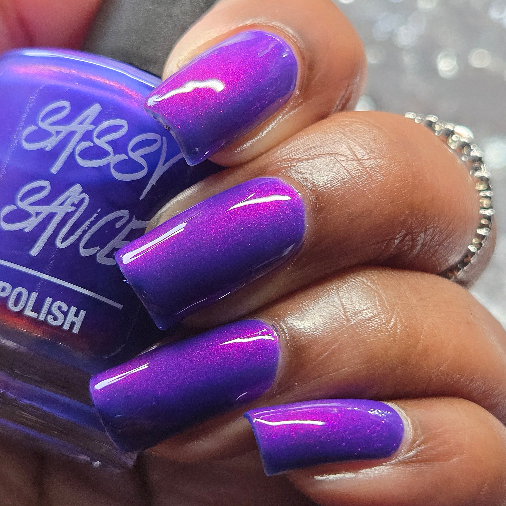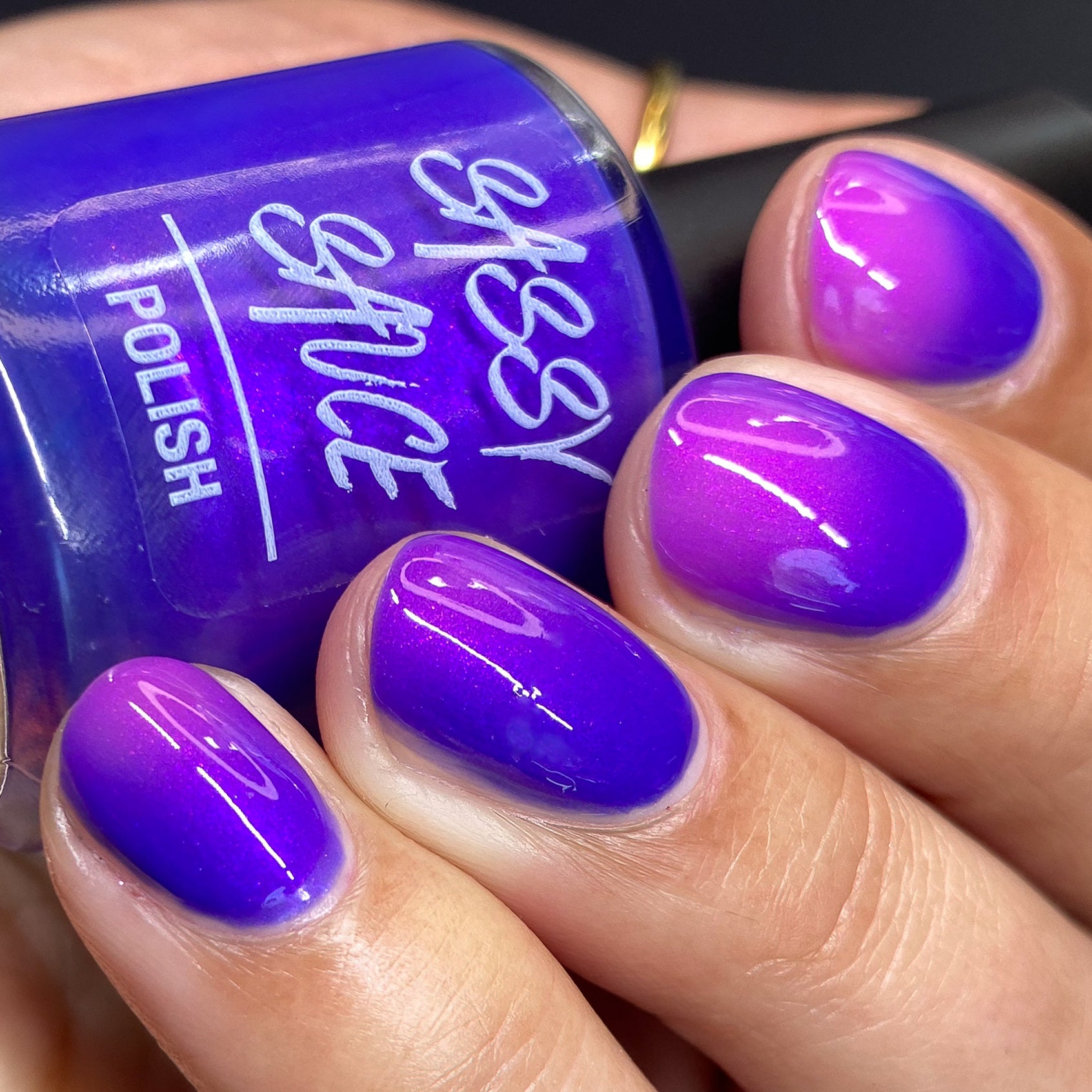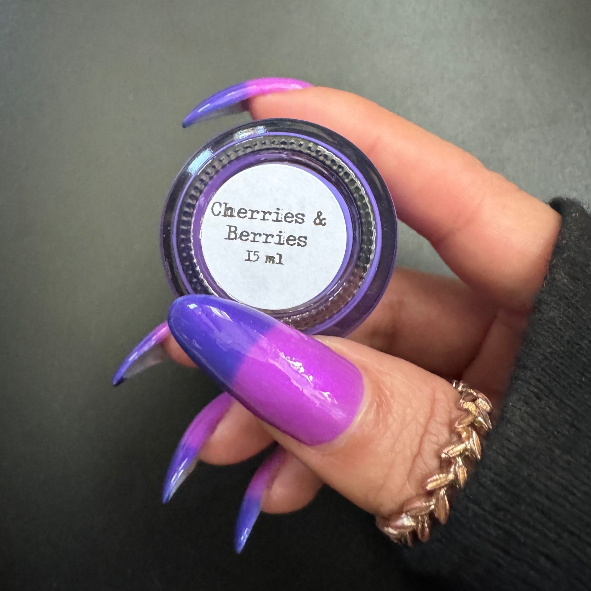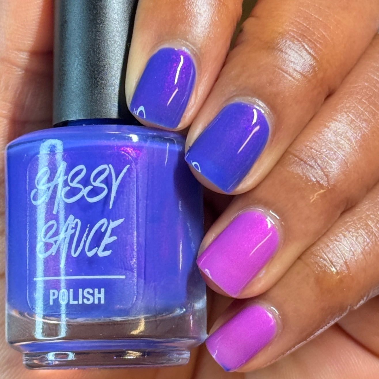 A sapphire (cold) to purple (Warm) thermal with a purple/red shimmer that will pop in the sun. A dearly departed friend used to say cherries and berries every time we passed someone pulled over on the side of the road.