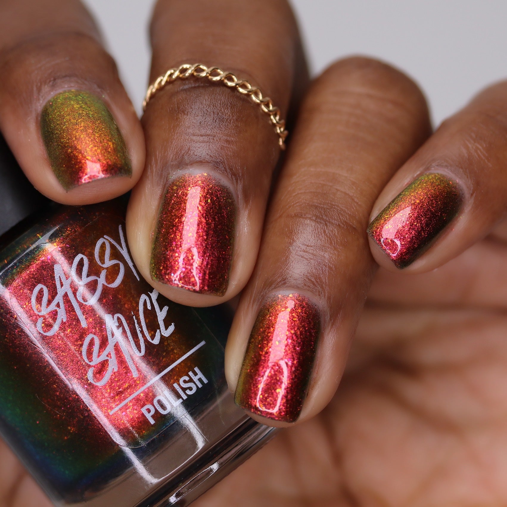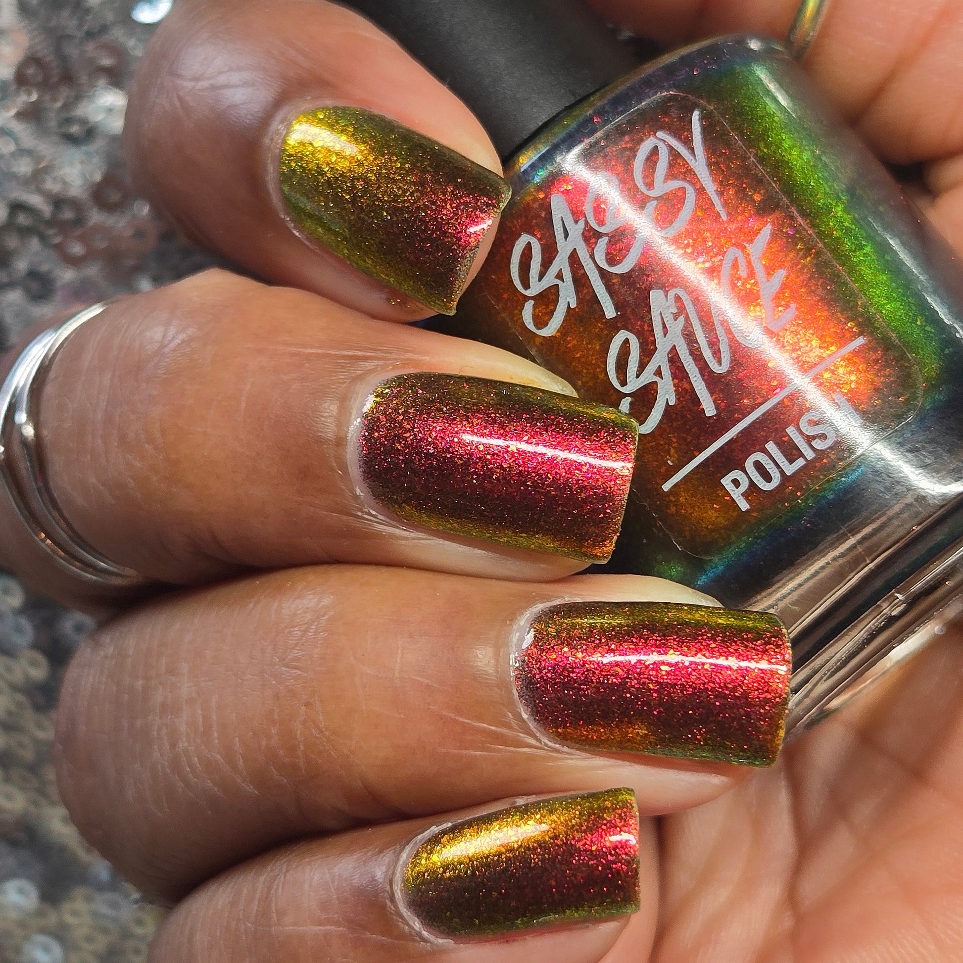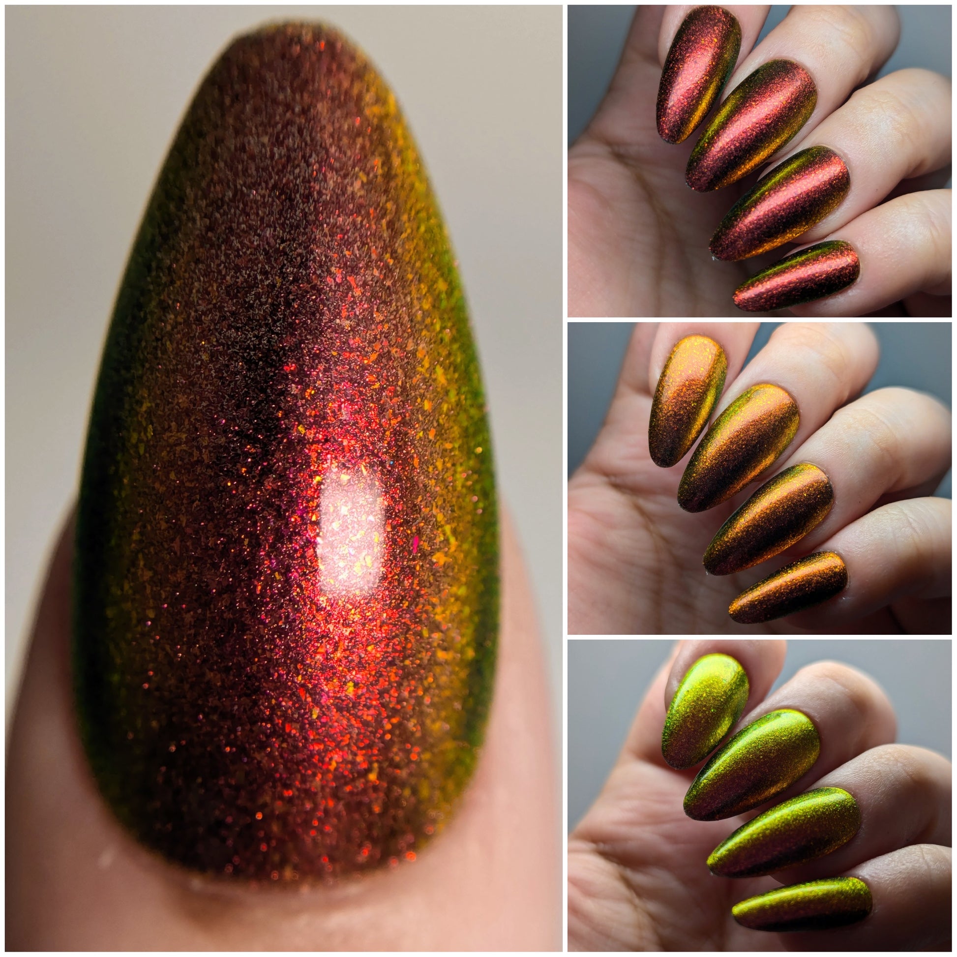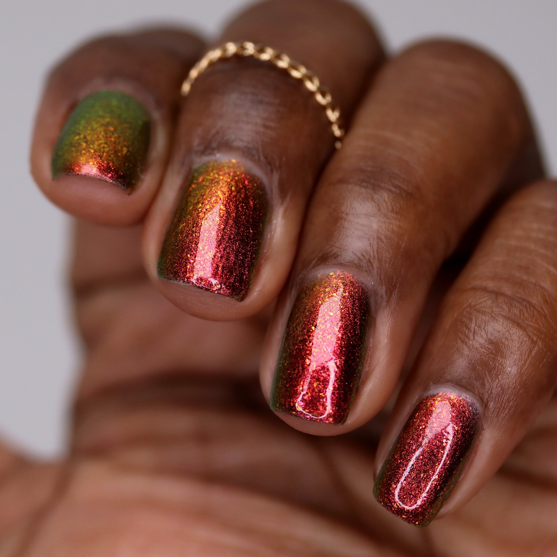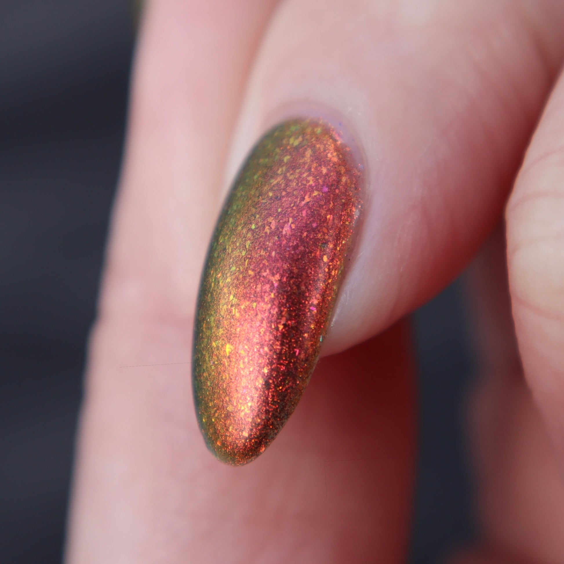 A copper/golden/green glowey multi chrome with similar micro flakes to add extra twinkle. Named by Mary Sandberg. 20% of sales of this polish through the month of March will be donated to National Multiple Sclerosis Society https://www.nationalmssociety.org