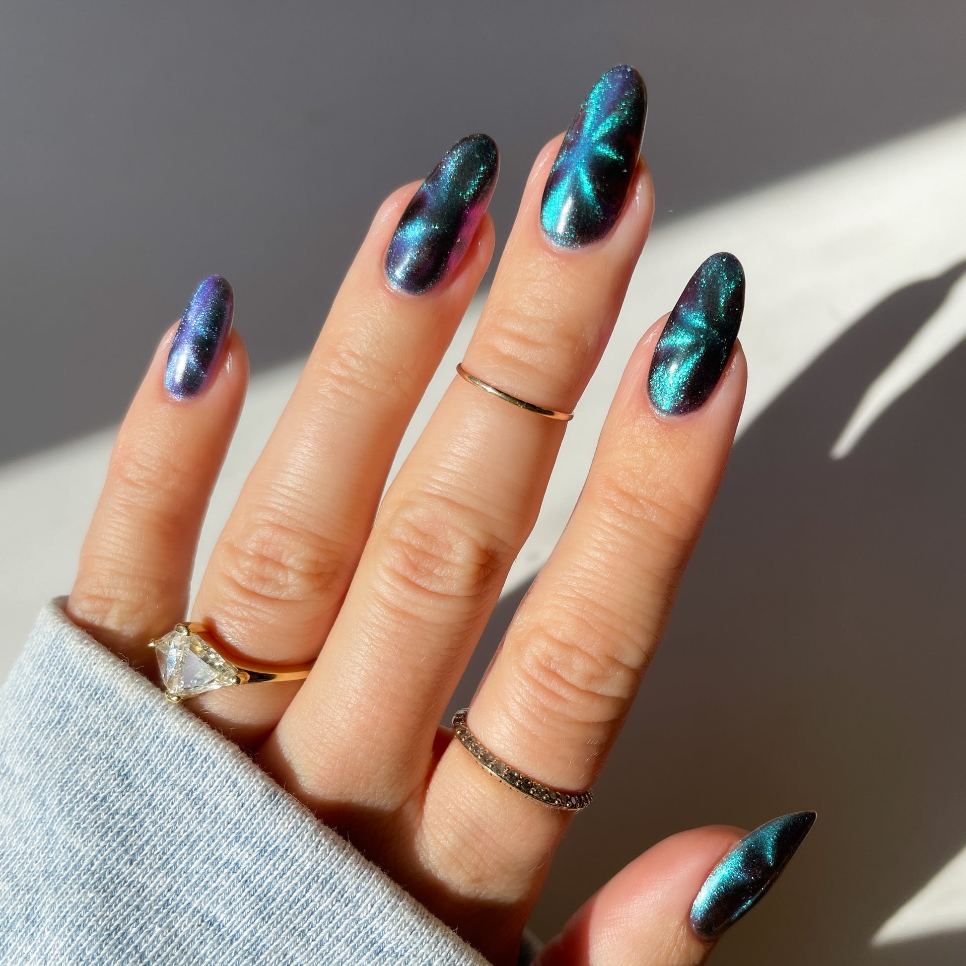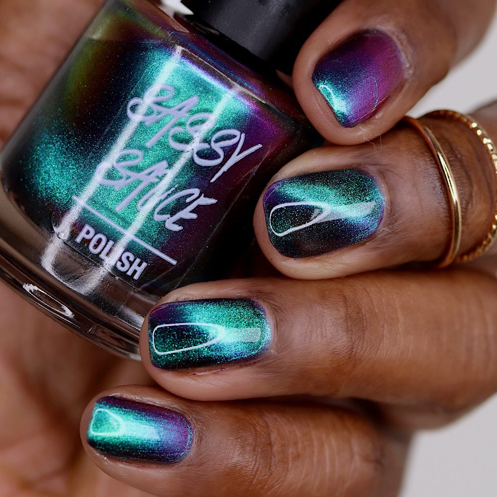 Precious pearls, metals & magnetics GC A shifty magnetic that shifts through purple/pink/green/blue/gold. Looks great by itself and magnetized but velvet takes the cake!!!!! It’s magical. Named by Mary Sandberg.