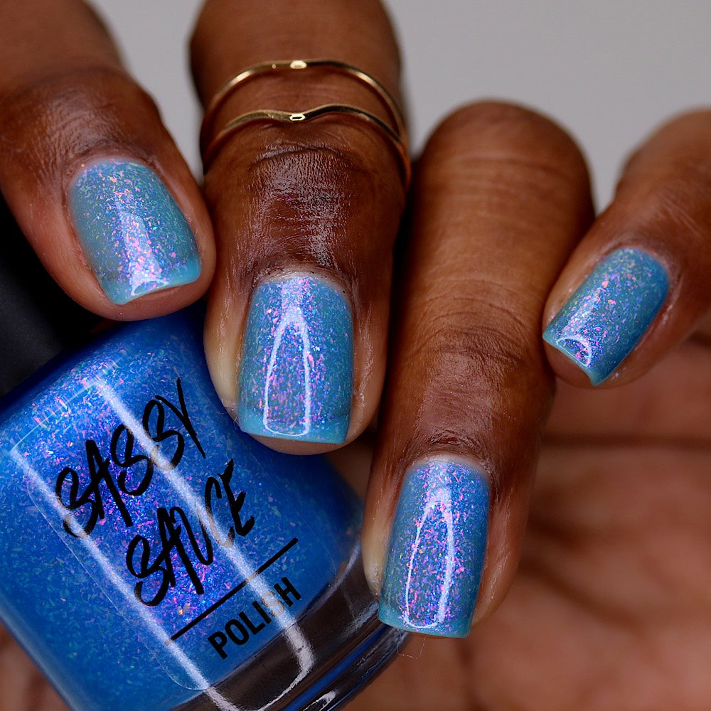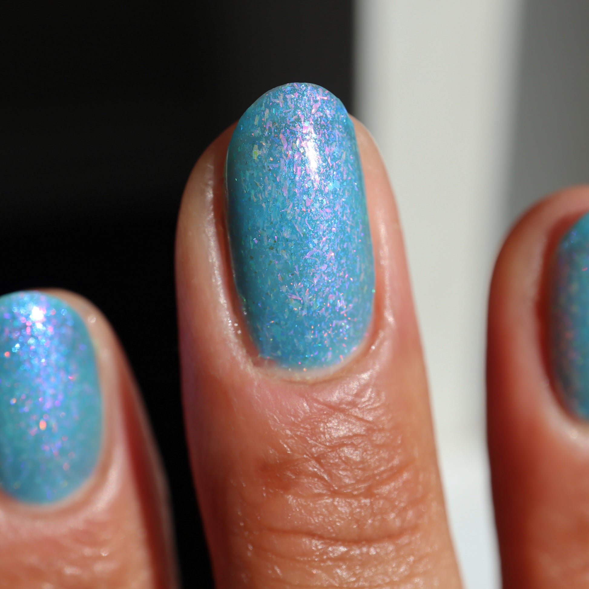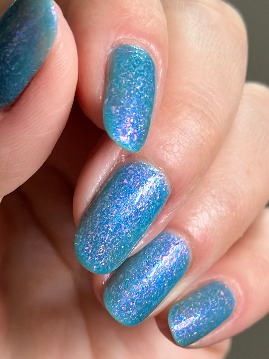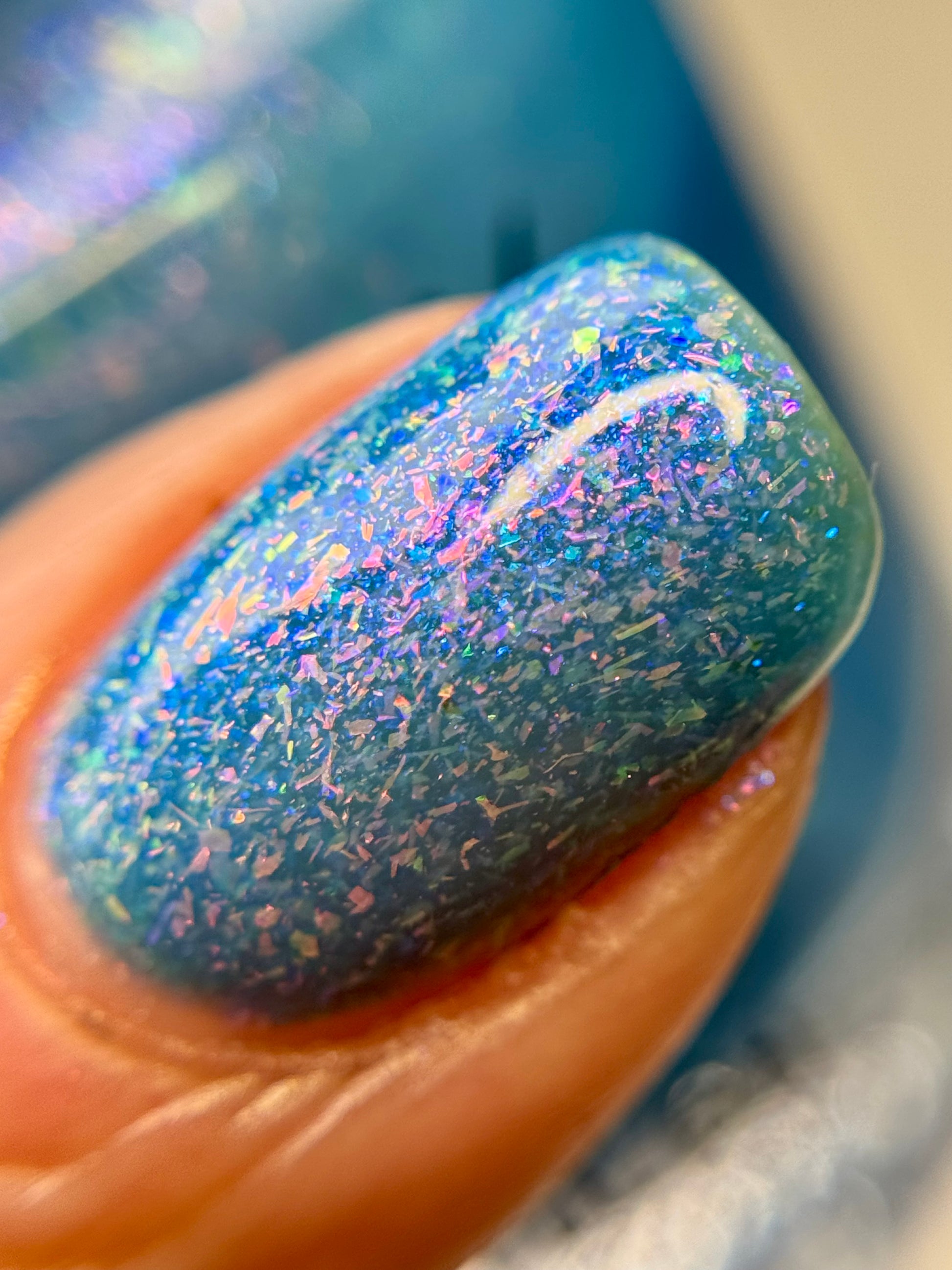 A cyan crelly with a glowey blue shimmer and copper/pink ghost flakies. This group custom is for the shades of cyan fb group, please join if you are not already in there. Named by Mary Sandberg.