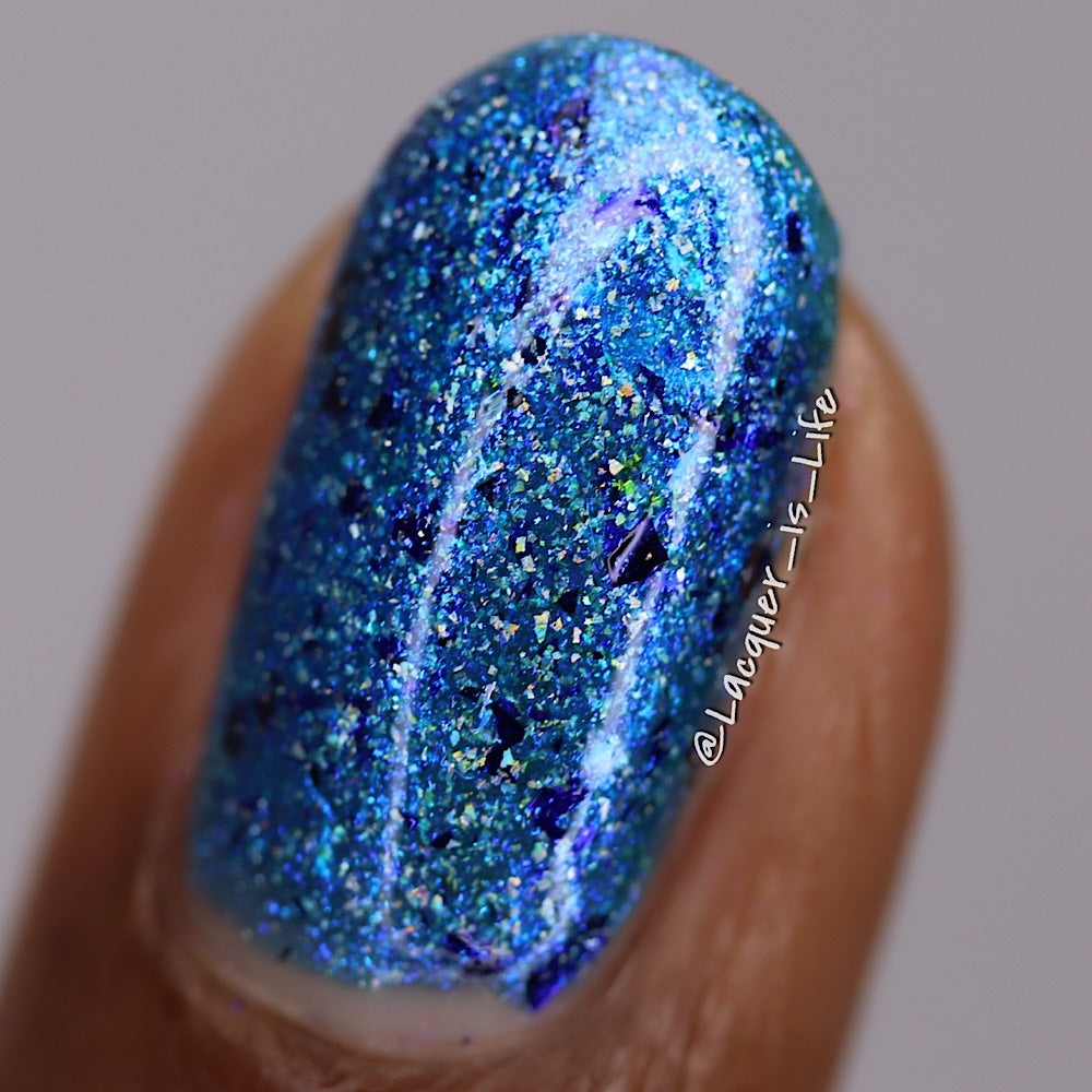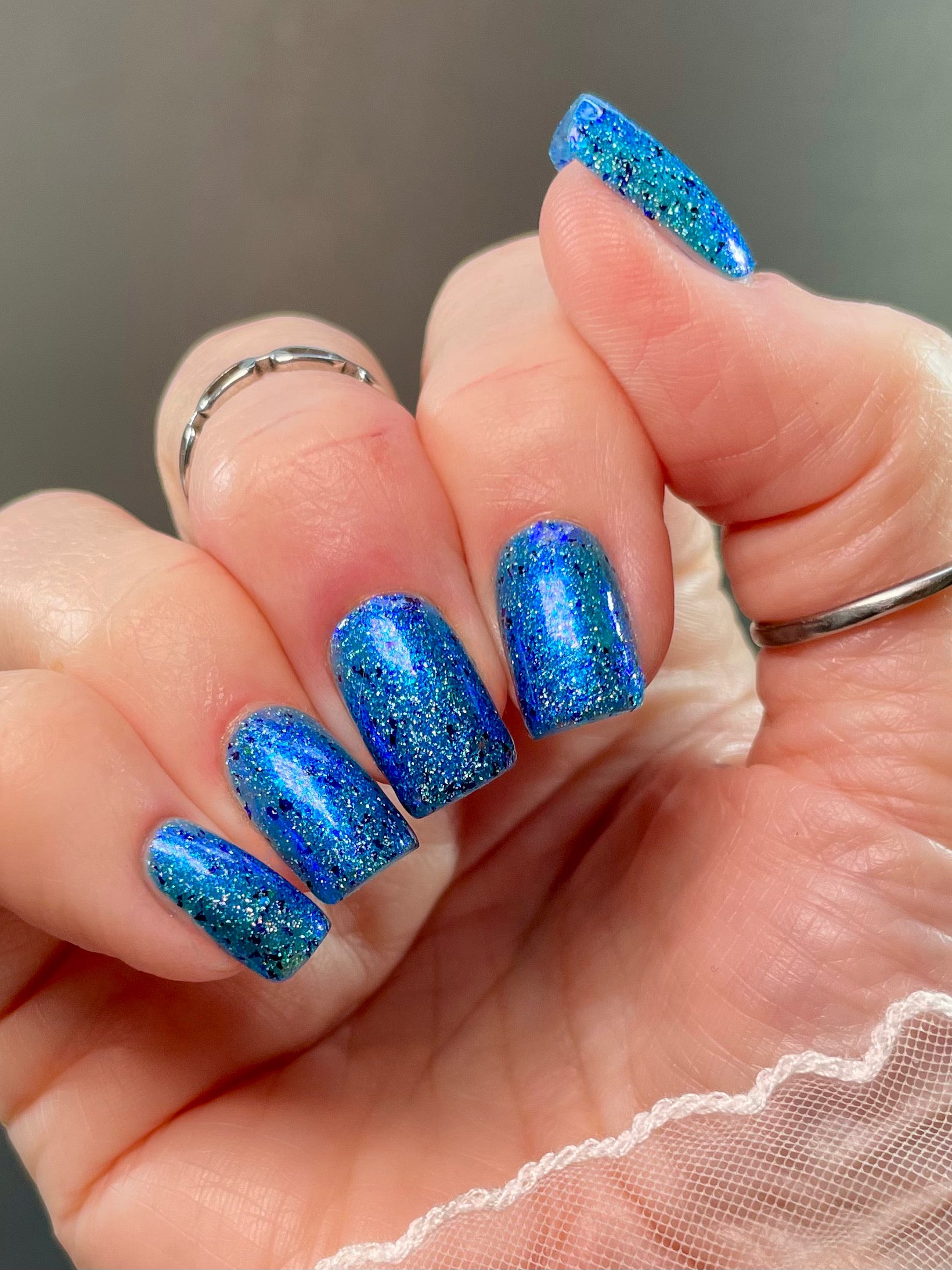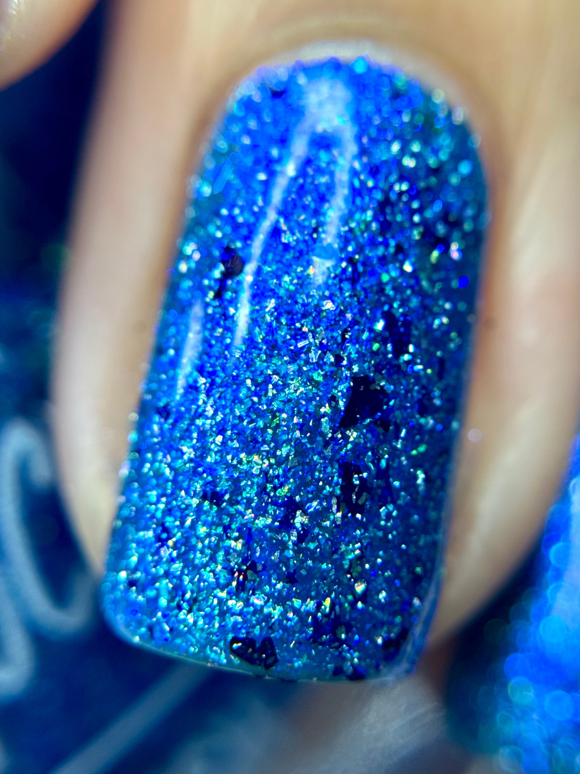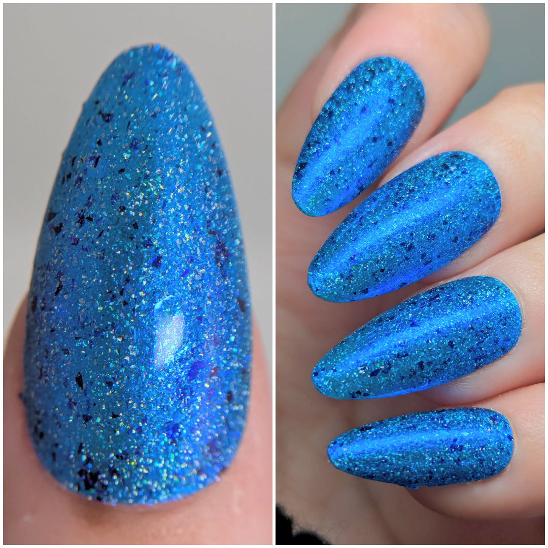A glowey blue shimmer packed with holo and UCC blue/black flakies.