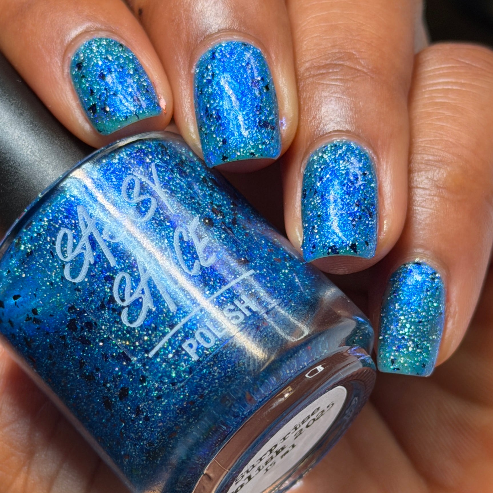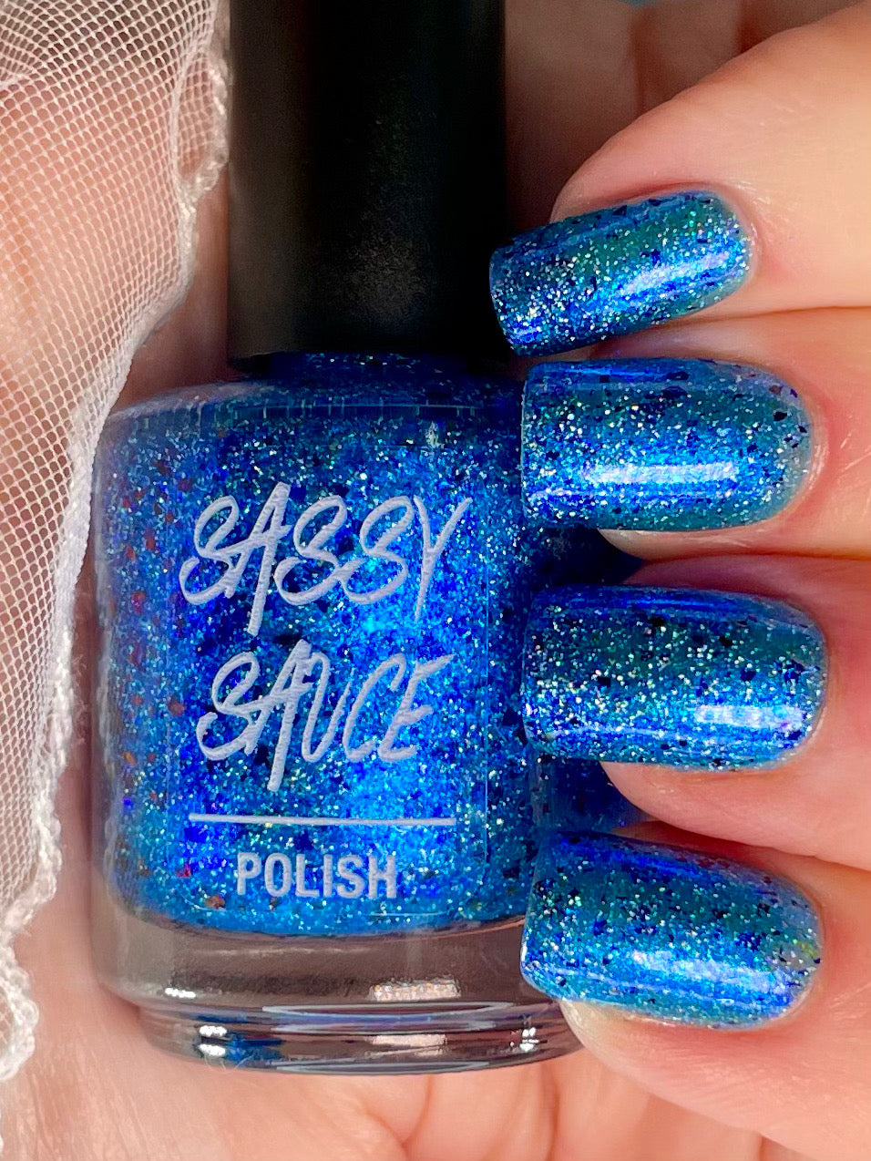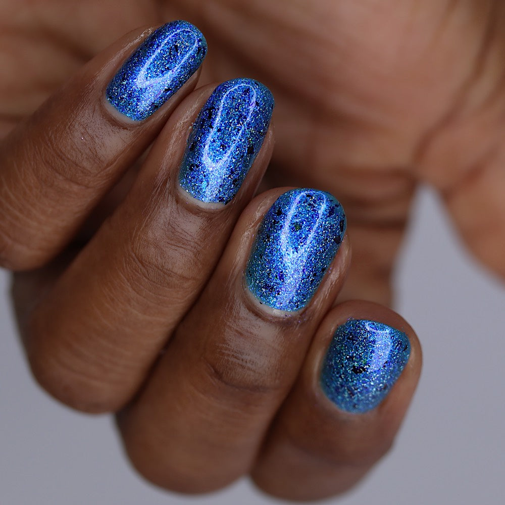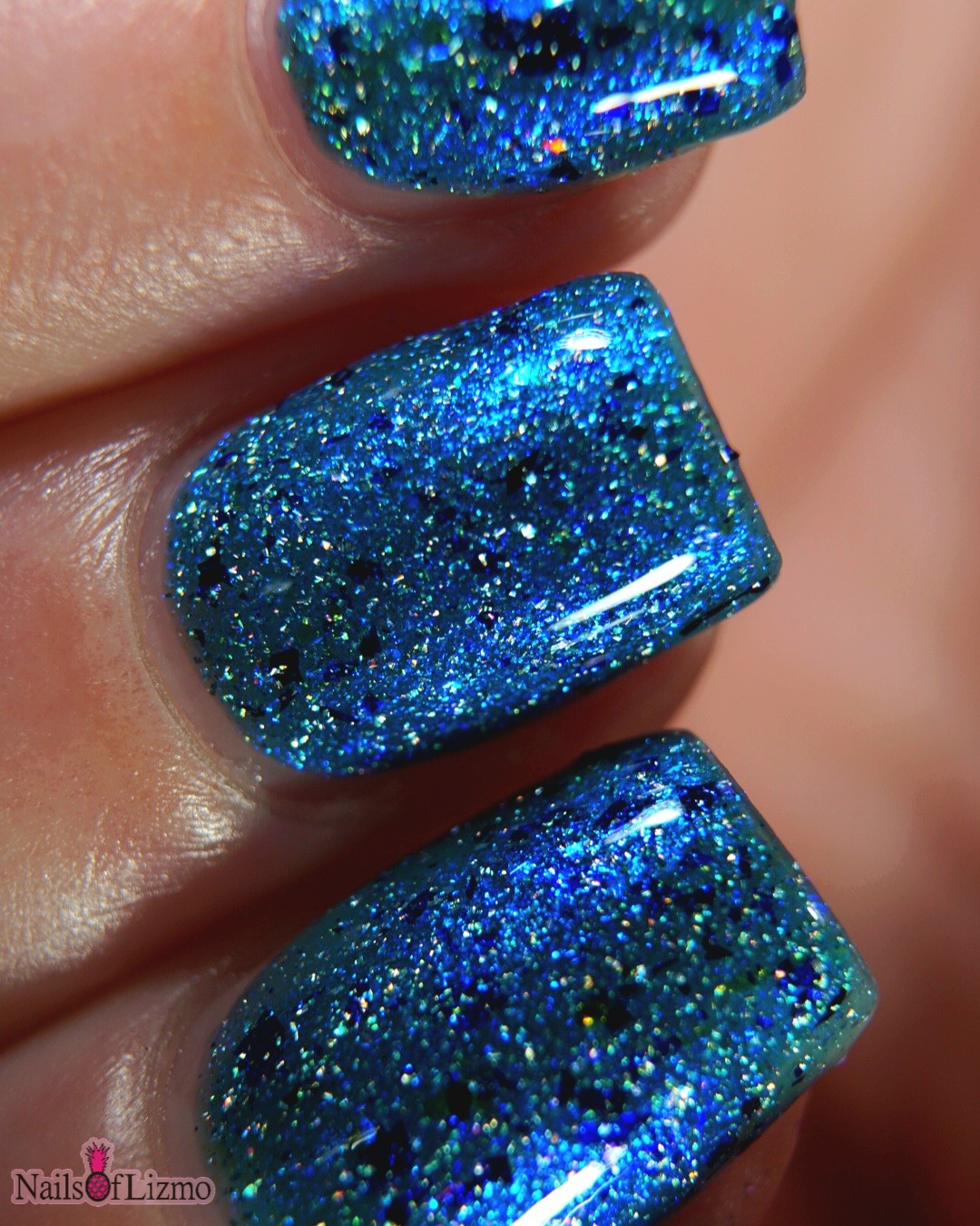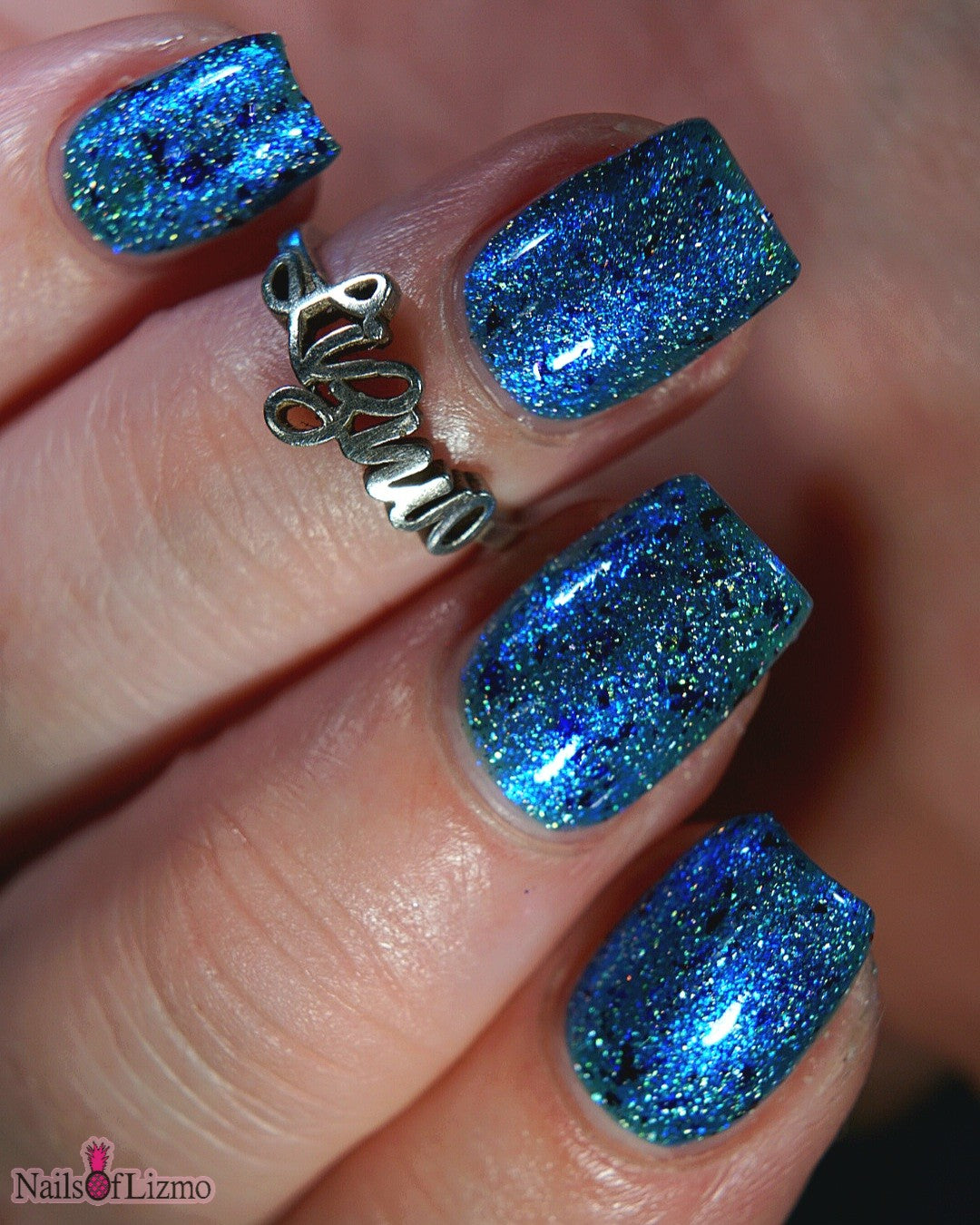 A glowey blue shimmer packed with holo and UCC blue/black flakies.