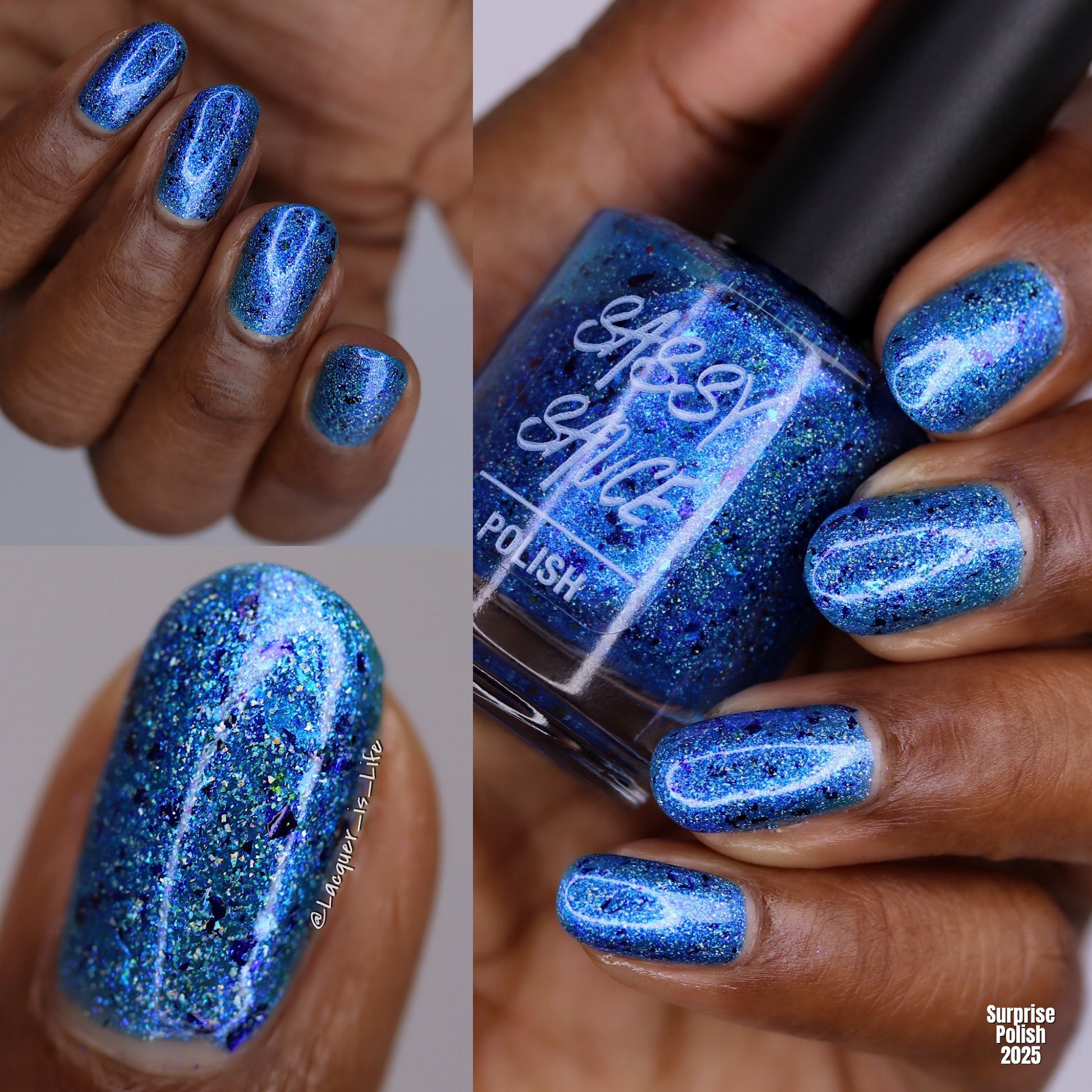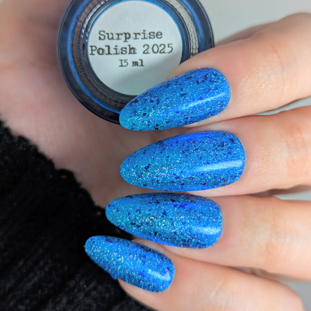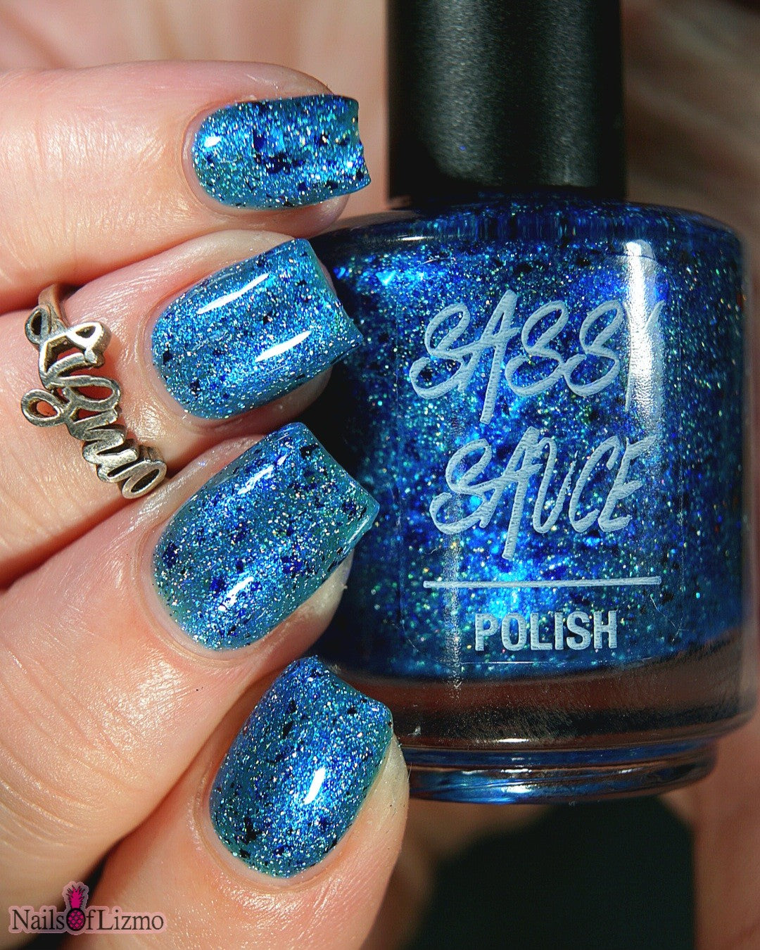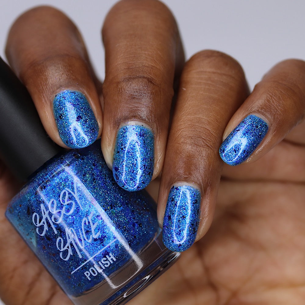 A glowey blue shimmer packed with holo and UCC blue/black flakies.