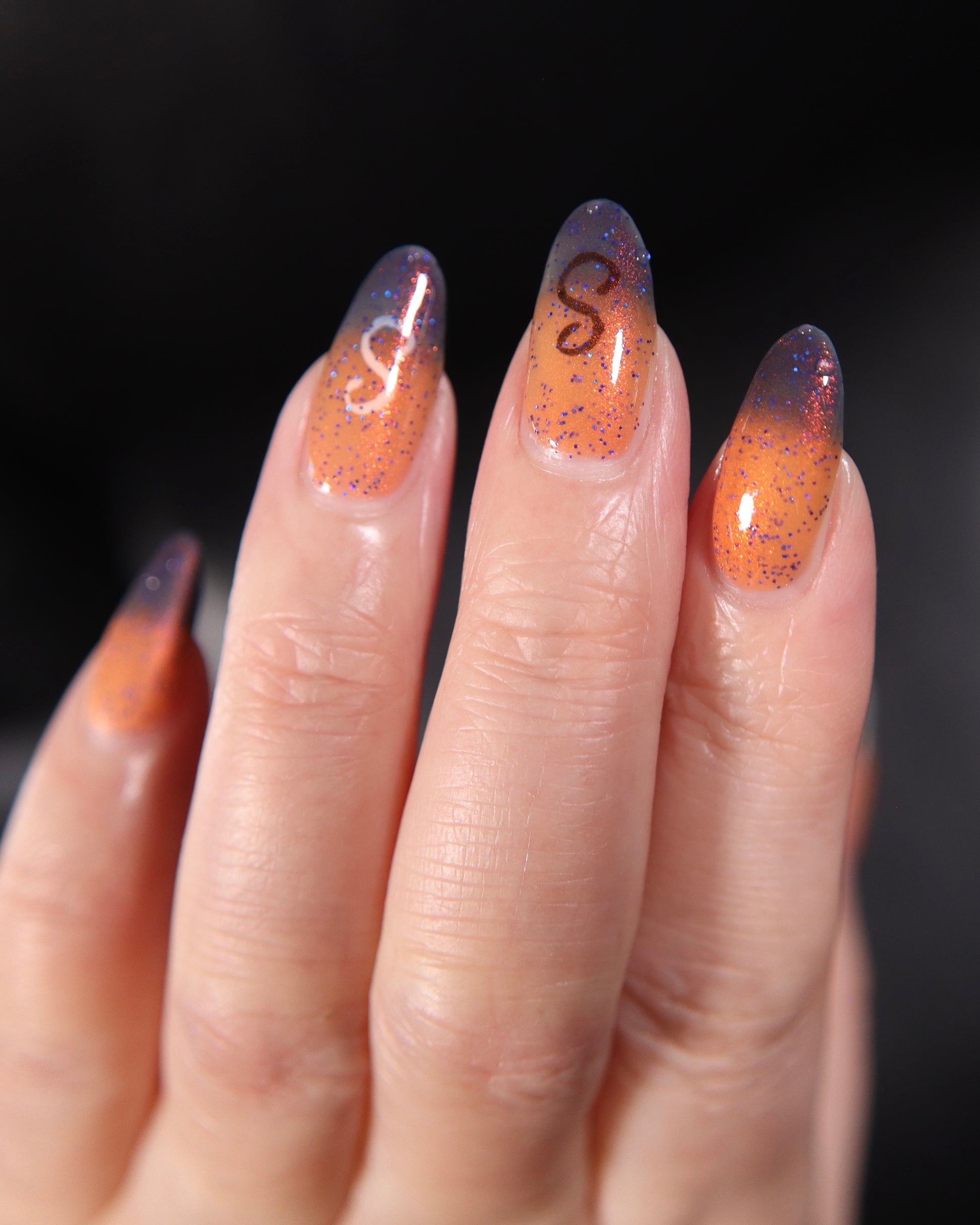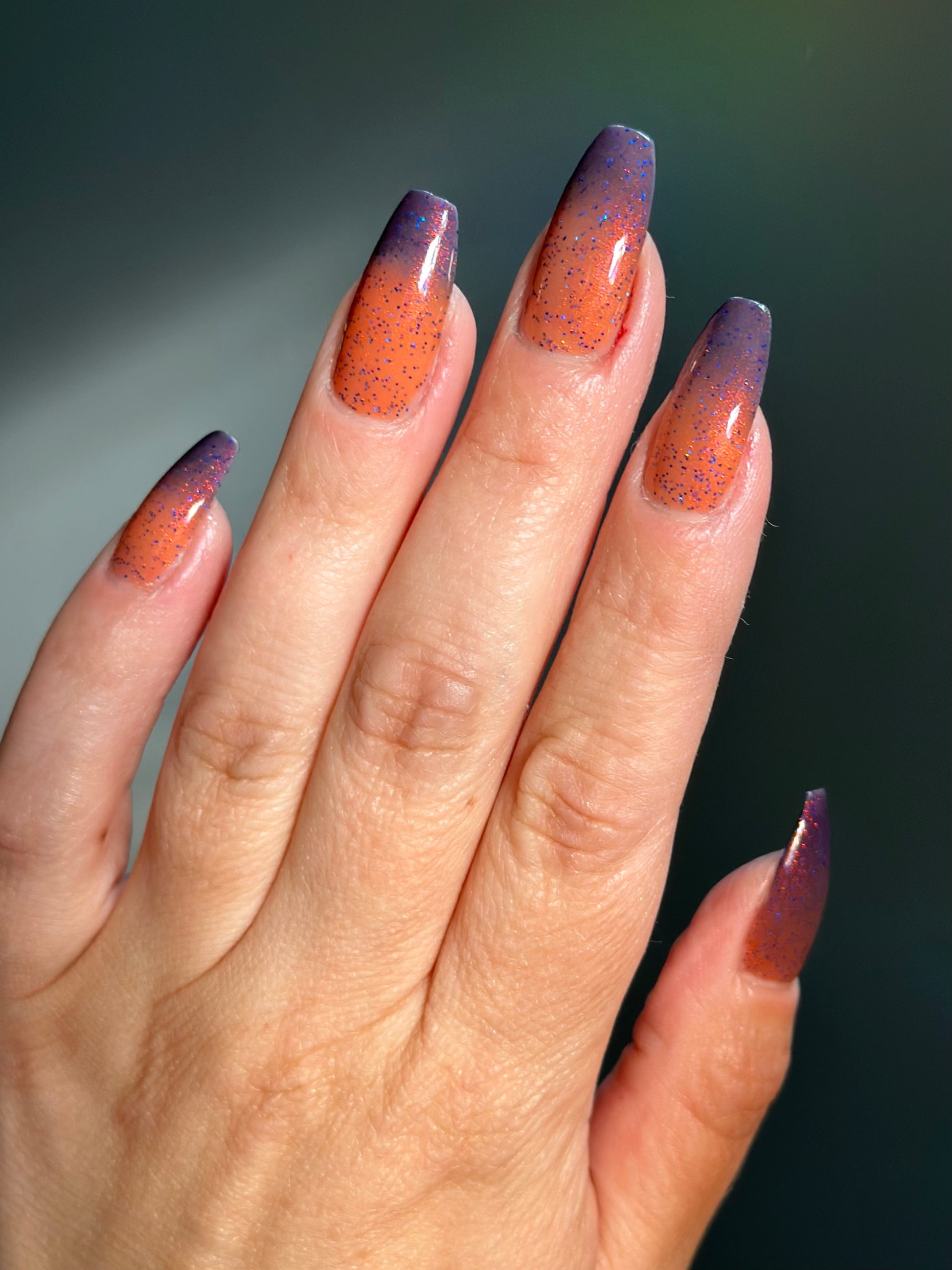 A blue (cold) to orange (warm) thermal with a copper/red shimmer and blue micro glitter. This is a tribute to the Bears.