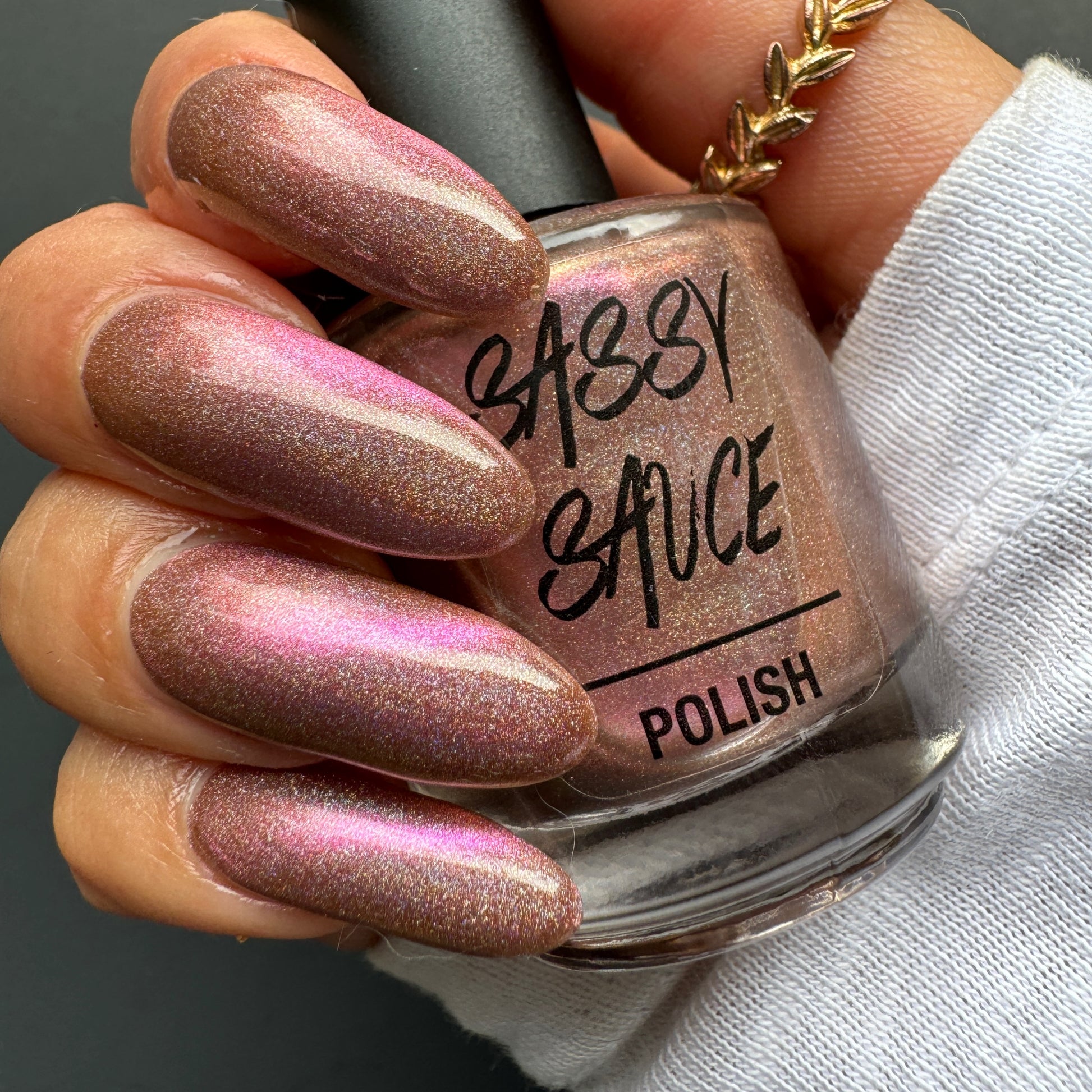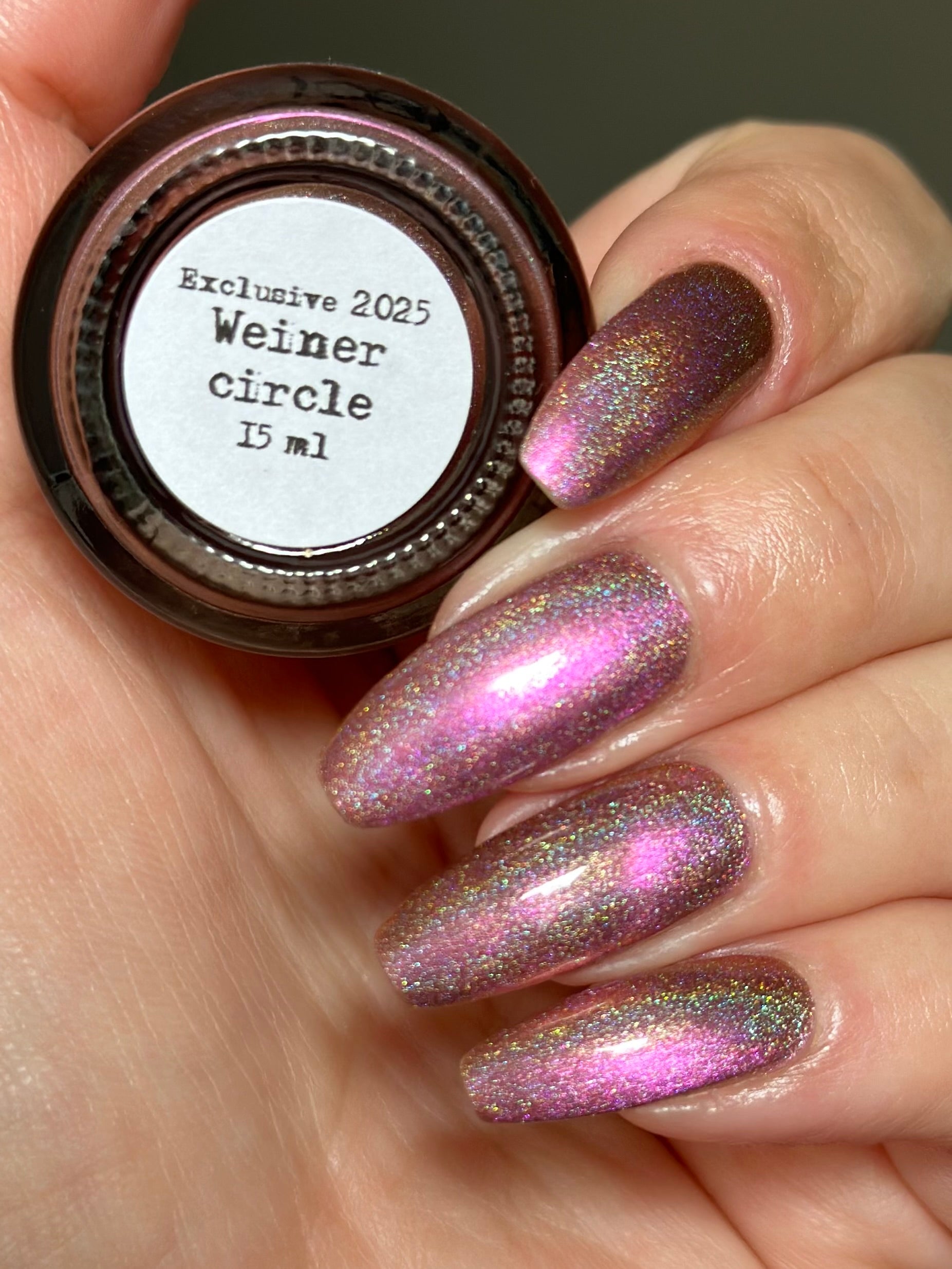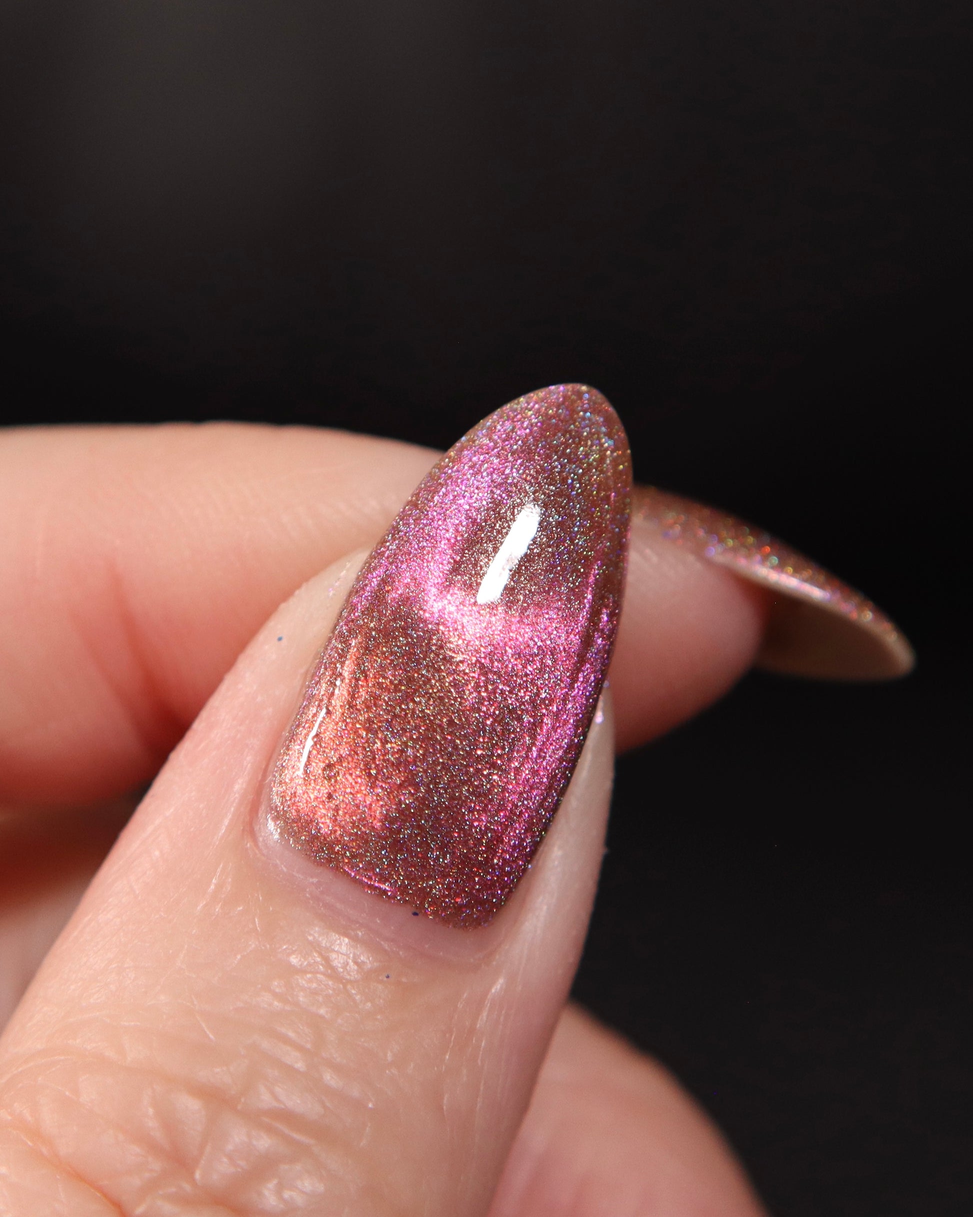 A pink/copper magnetic with holo in the background. When magnetized, it will pull a pink cat eye and I have to say it looks really cool with a velvet magnet. Weiner circle is a hot spot, I don’t want to spoil the experience. If you have the time, try to go there… It is definitely worth the trip.